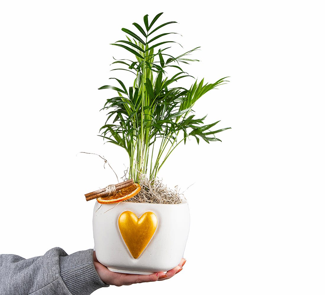 Kalp altın yaldızlı beyaz saksı içerisinde shamadore bitkisi ile hazırlanmıştır. Yardımcı malzeme olarak kurutulmuş portakal kabuğu ve kabuklu tarçın kullanılmıştır. Çiçeğin toplam büyüklüğü 30 cm civarındadır. Çiçeğin toprağı gözükmemesi için kurutulmuş thillandsia yaprakları kullanılmıştır. Bakımı için haftada bir kez yarım çay bardağı kadar su verilmelidir. çiçeğiniz hem büyüyerek hamde genişleyerek dolgunlaşacaktır. Eskişehir çiçek eskişehire çiçek gönderme de en hızlı ve en güvenilir adrestir. Eskişehir çiçek eskişehirdeki çiçekçiler arasında öncü konumdadır. Her zaman yenilikleri takip eder ve sevdiklerinize mutluluk taşır. Eskişehir çiçekçi